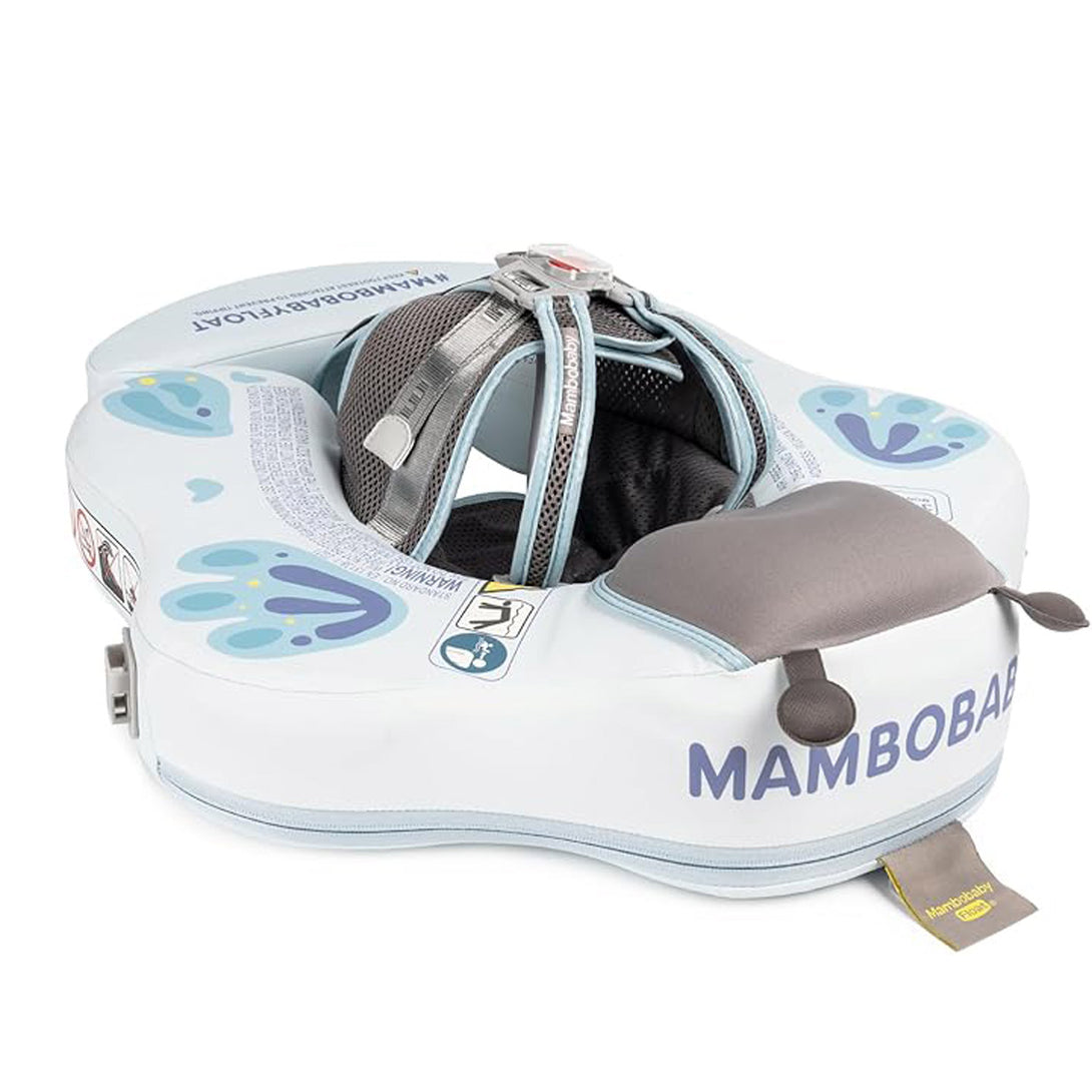 Der nicht aufblasbare MamboBaby Float bietet ein Westendesign mit breiten Gurten für mehr Komfort und stützt die Hocke und den Bauch, um ein Umkippen zu verhindern.