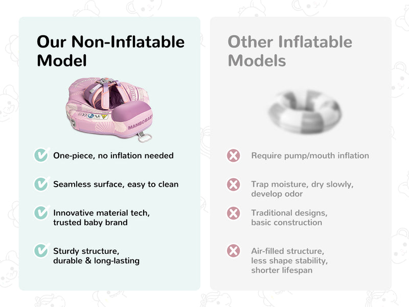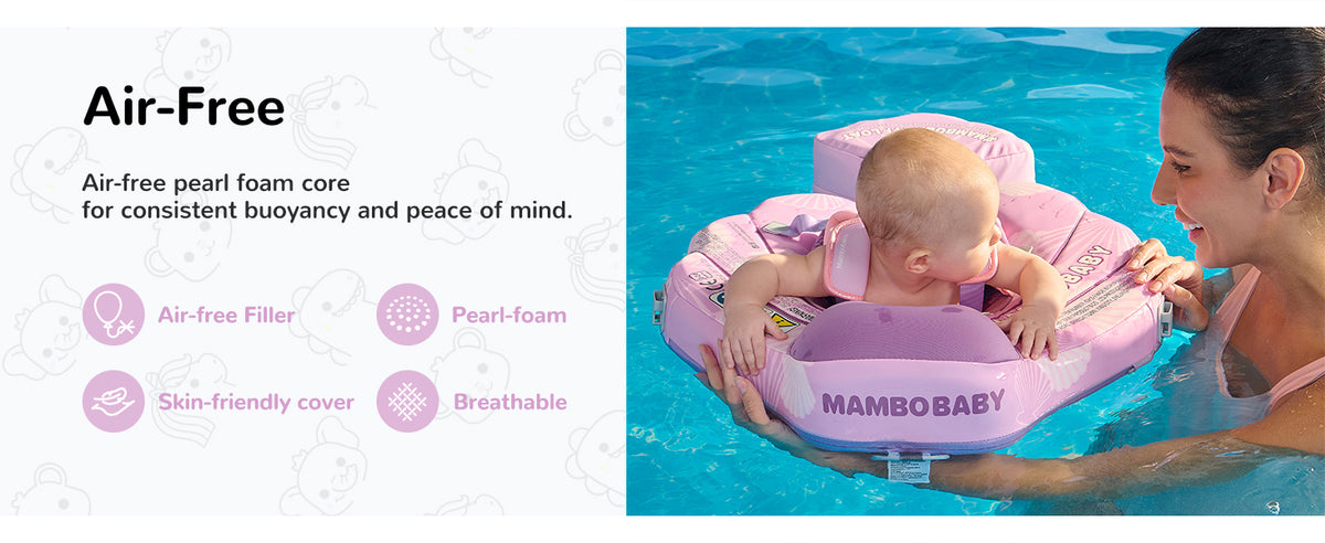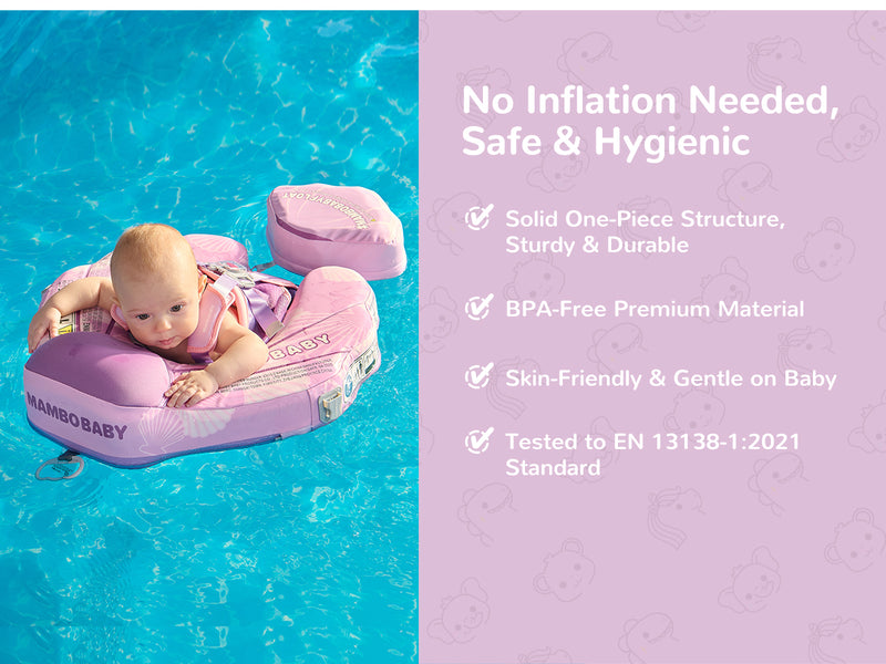 Das eng anliegende Design des nicht aufblasbaren MamboBaby-Schwimmrings Float im Weste-Stil mit breiteren Trägern ist bequemer, stärkt die Position der Hocke und stützt den Bauch, um zu verhindern, dass er nach hinten fällt oder umkippt.