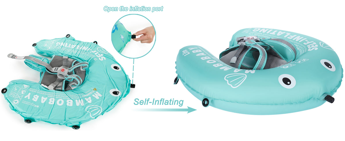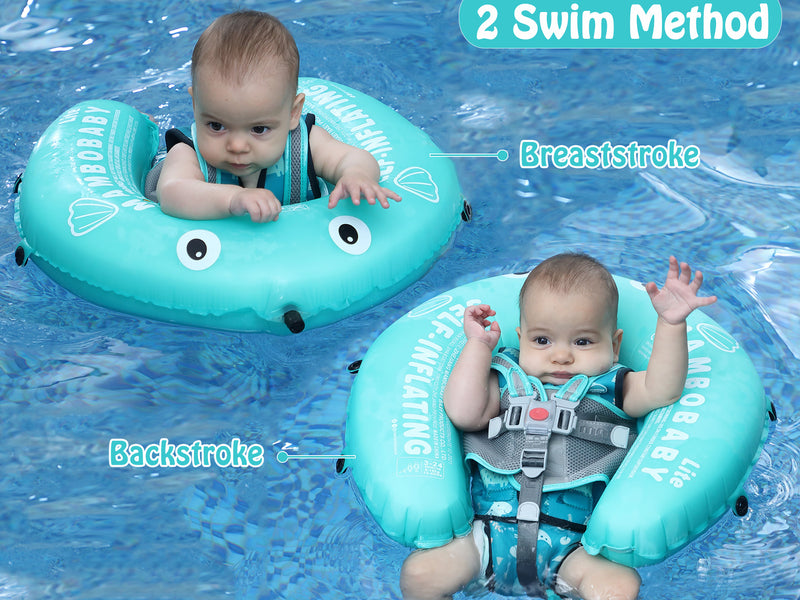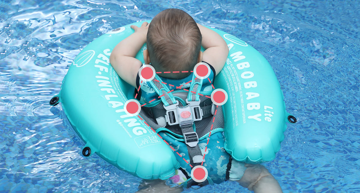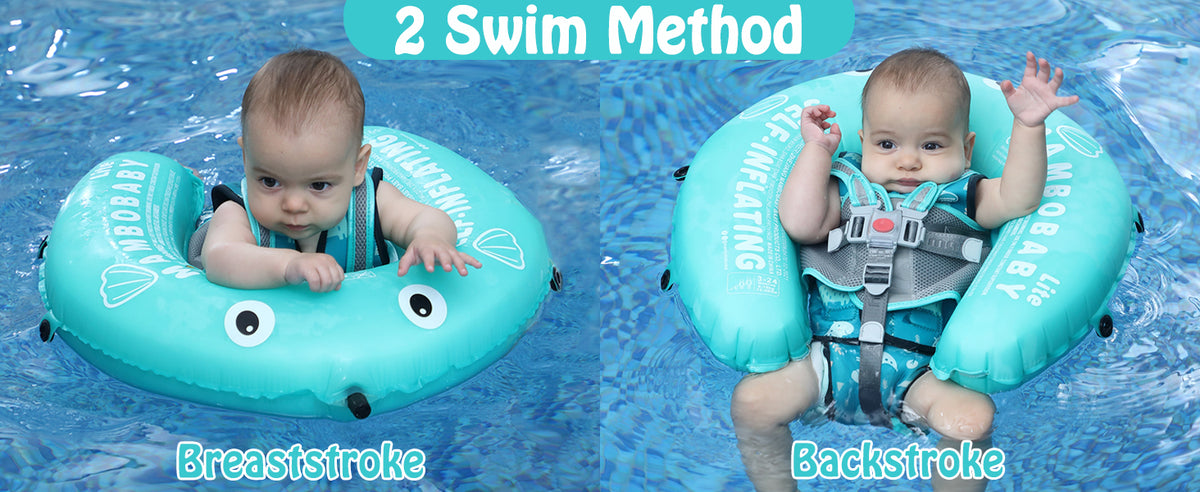 【UPGRADED SAFETY BUCKLES】The Upgraded safety buckle provides 4 support points and perfect 40°angle to keep the balance to avoid baby flip over and fall off. Upgraded into 2 swim ways which are backstroke and breaststroke with different buckle method. Backstroke Suitable for 3~12months baby, breaststroke Suitable for 3~24months baby.