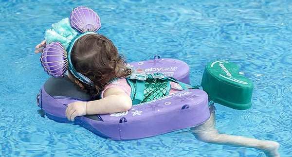 When the baby is lying on the swim float, being able to maintain the post of breaststroke all the time, cultivate your baby's correct swimming posture.