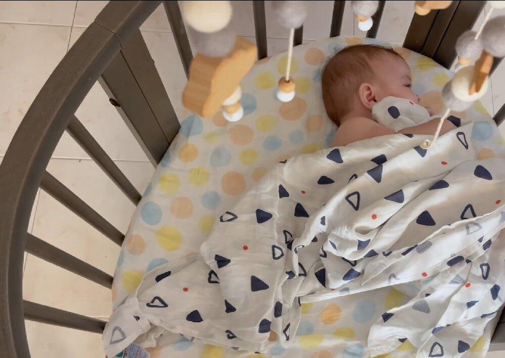70% bamboo + 30% cotton muslin for a breathable, gentle touch on delicate skin. - Oversized 47” × 47” Design