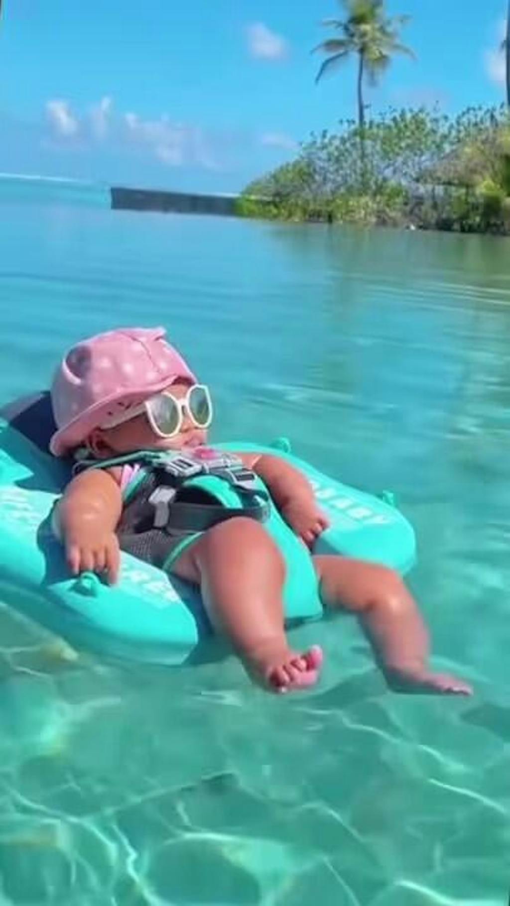 When the baby is lying on the swim float, being able to maintain the post of breaststroke all the time, cultivate your baby's correct swimming posture.