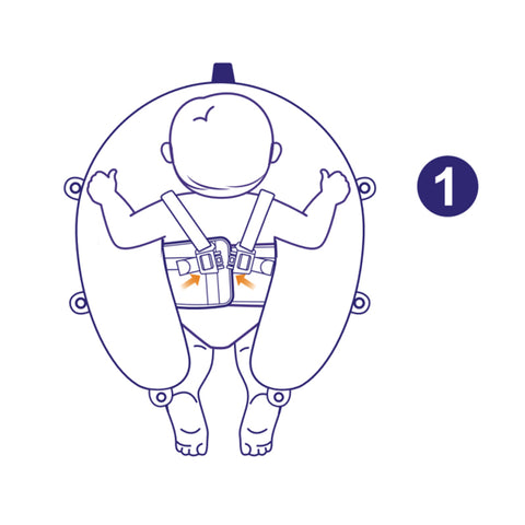 • Close the back wings (A-6) and attach the hook and loop fastener to fit your baby's chest.