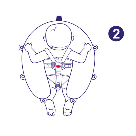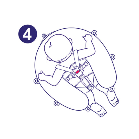 • Place your baby on its stomach on the chest/back rest (A-5) in the middle of the float andplace its chin within the headrest area.