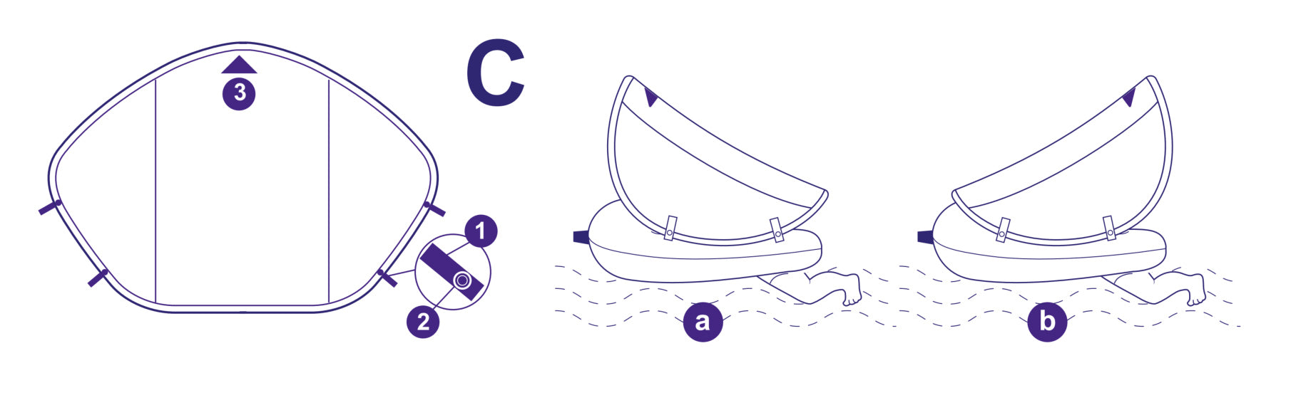 • When floating on its stomach, the arrow (C-3) on the canopy points towards to the head of the float.