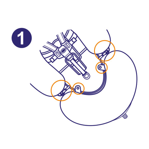 1. Mounting strap 2. Snap button  3. Arrow