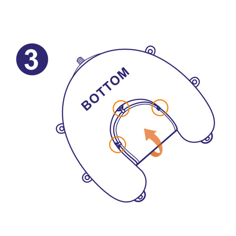 Flip the main part (B-11) to thebottom of side. Fold the floating bednetting (B-5) in the direction of thebottom of the headrest (B-8) andfasten its three mounting straps withthe three mounting holes on theinside of the bottom of the float.