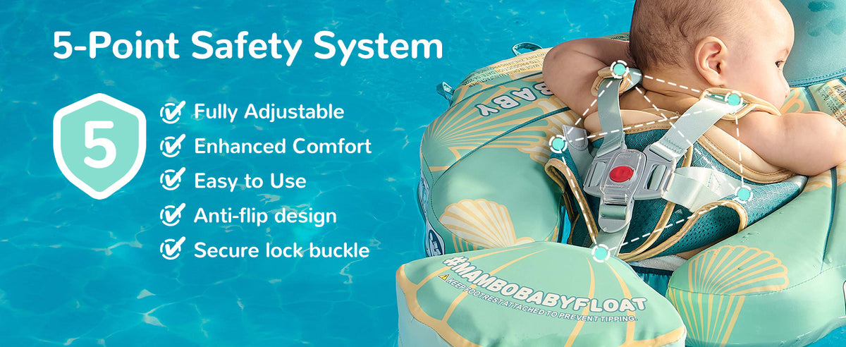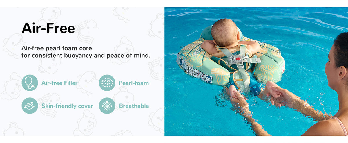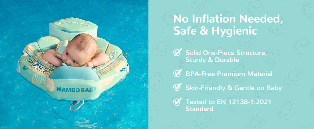 - Supports 2 swim positions: backstroke for 3–6 months, breaststroke for 3–24 months.