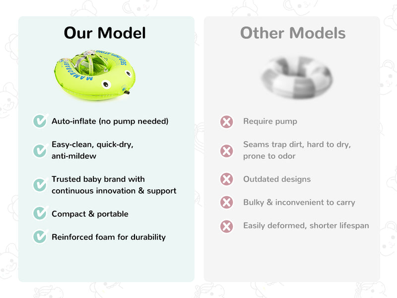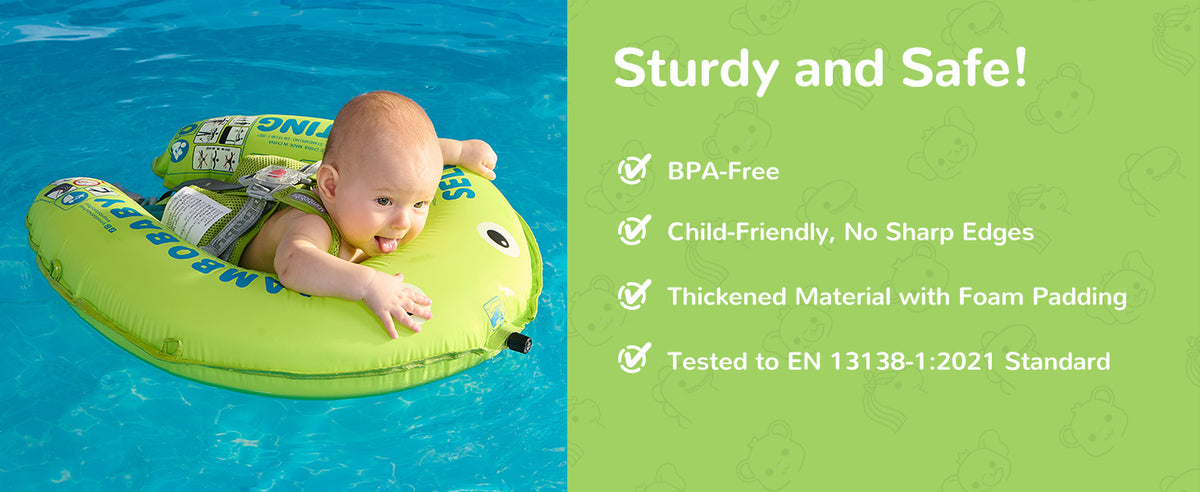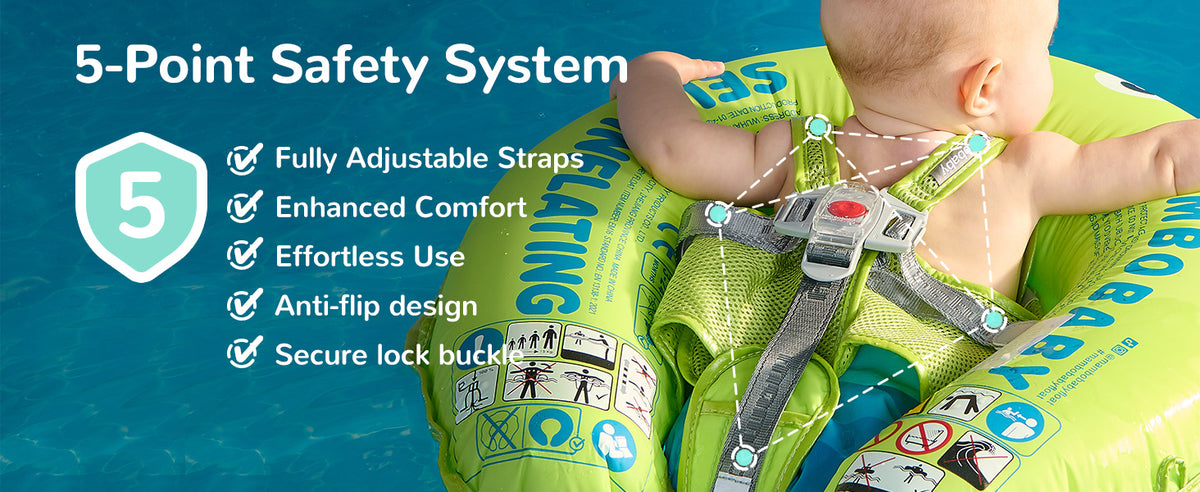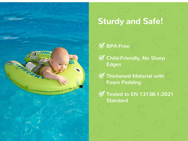 - Supports 2 swim positions: Backstroke (3–12 months)/Breaststroke (3–24 months)
