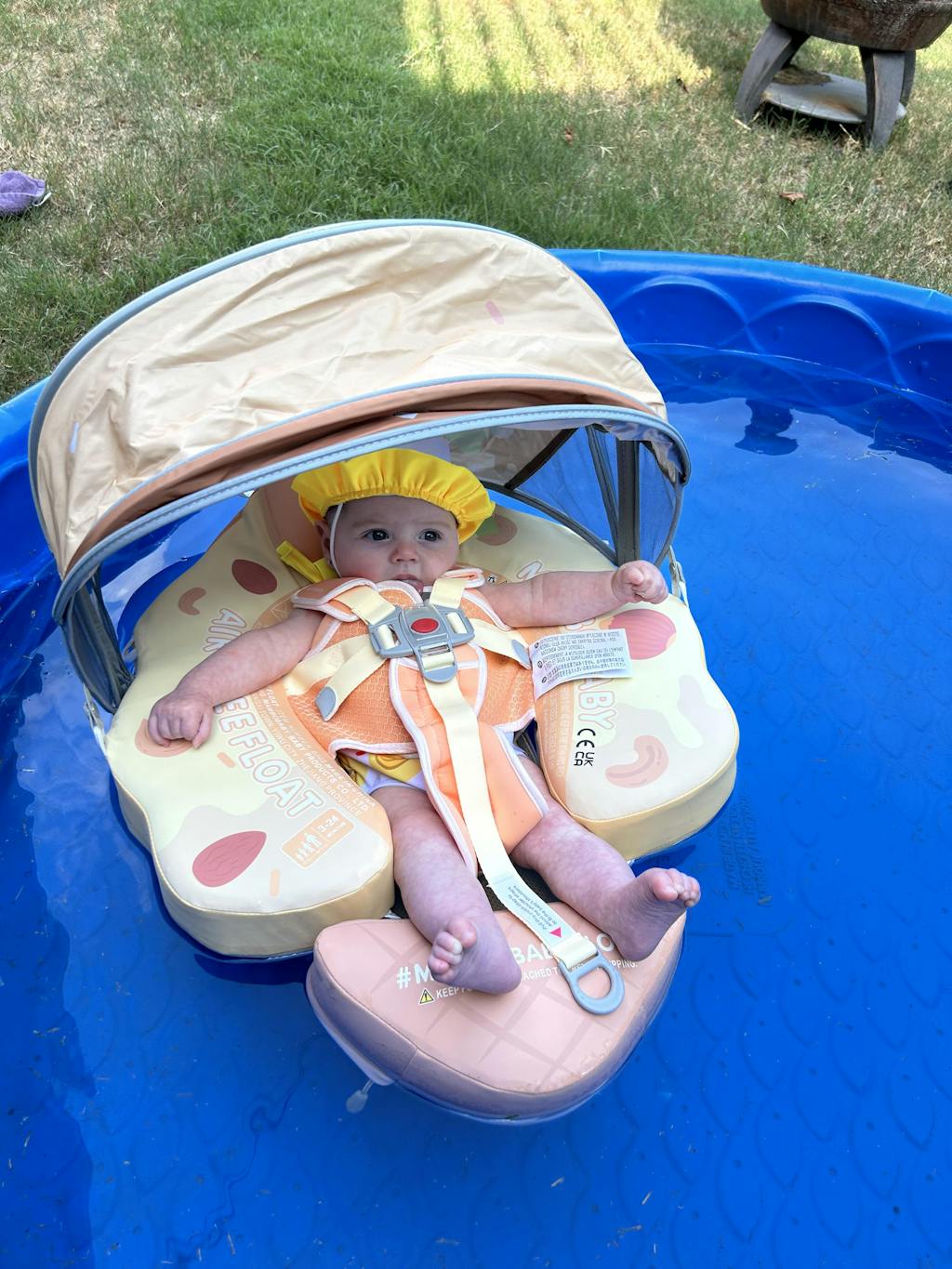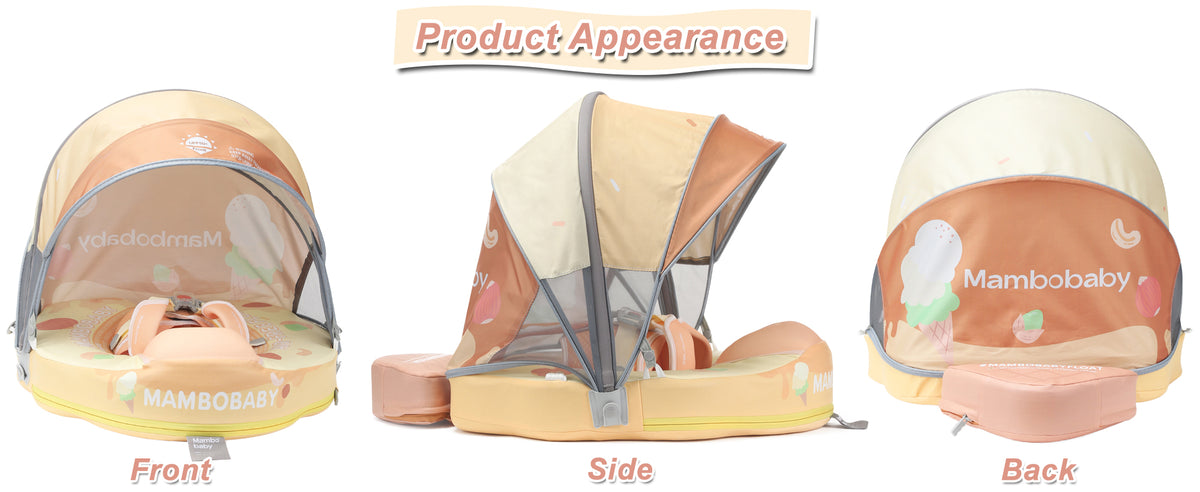 HECCEI Baby Swim Float comes with a removable canopy. The removable assemble UV-PROOF canopy sun canopy covered with UPF 50+ sunscreen coating protects baby’s skin away from the sun. Make baby enjoy the swimming fun in summer.