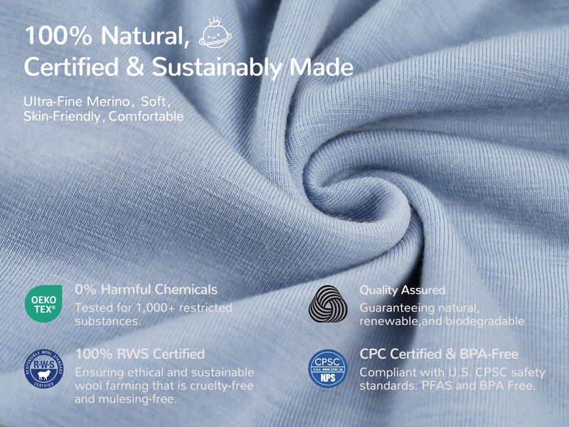 The material is exceptional. The cotton and merino double stack feels incredibly soft and lightweight, and I could tell immediately that this is a premium product made with child?friendly and earth?friendly materials. And the fact that it’s made in Australia gives me even more confidence, if anyone knows merino, it’s the Australians. They have more sheep there than people (I think)! This has even been named #1 on an Australian best?of list for wool sleep sacks!