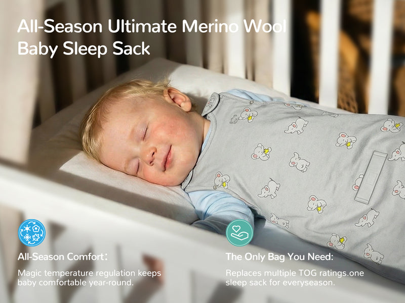 All-Season Merino Sleep sack - Snackyphant Grey