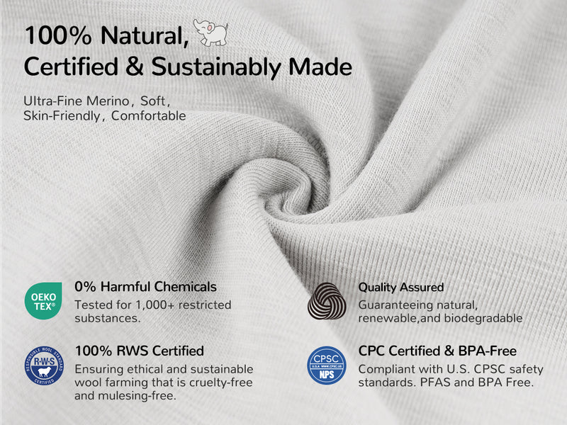 This sleep sack is absolutely amazing and feels extremely high quality right out of the package. The materials are excellent. I love that it features an Australian merino wool lining paired with a soft cotton outer layer. It feels breathable, comfortable, and well made, and I appreciate that it is certified, sustainably made, and free from harmful chemicals.