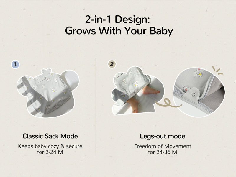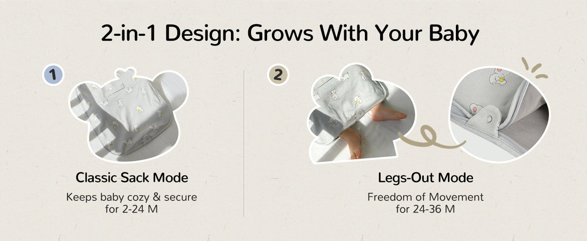 Luxe Goldilocks-Zone Sleep Sack With Legs Out or Cozy Tucked In Options.